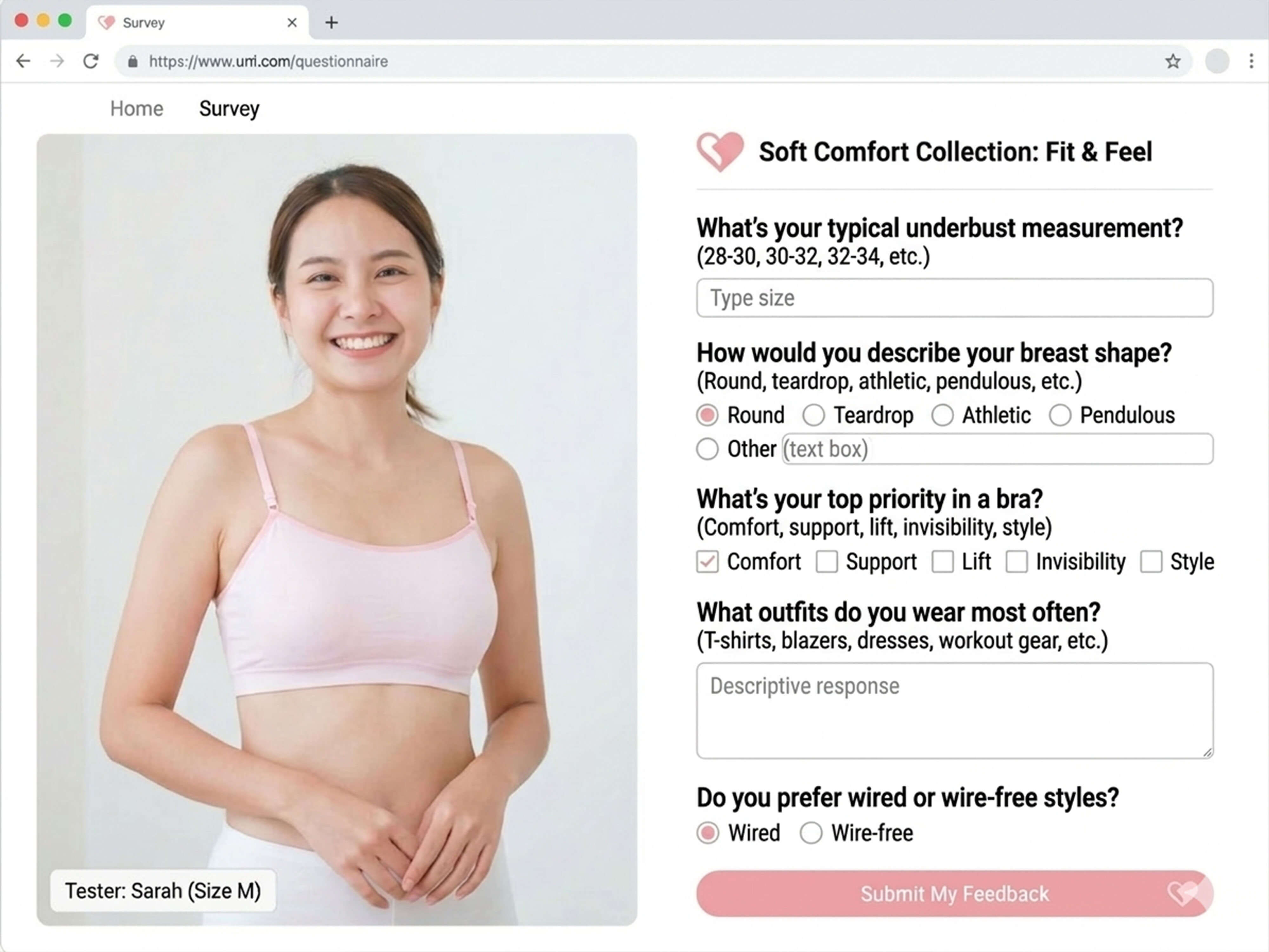 3. **What’s your top priority in a bra?** (Comfort, support, lift, invisibility, style)